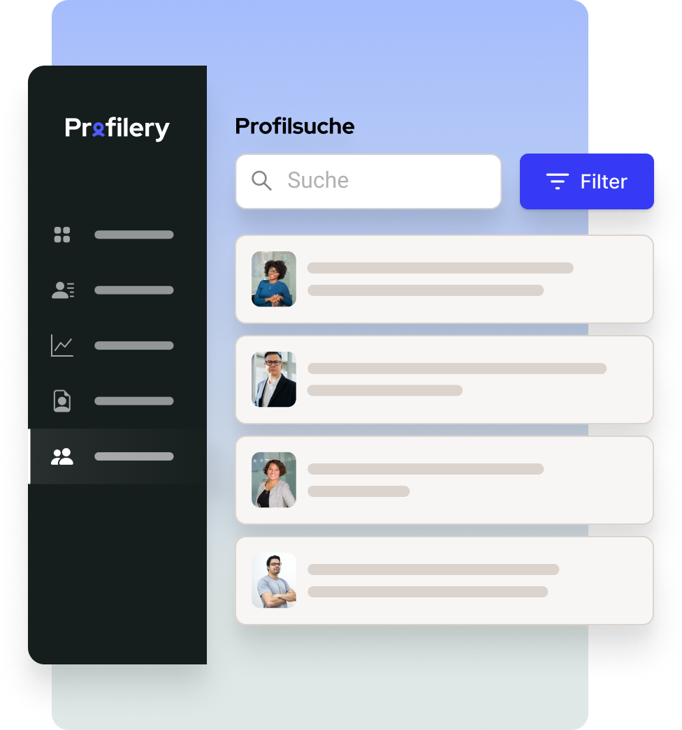 Profilery ist die Lösung für Sie, wenn Sie mit Personalprofilen arbeiten und eigene Mitarbeitende anderen Unternehmen im Rahmen von Projektarbeit anbieten. Wir unterstützen Sie beim Management digitaler Mitarbeiterprofile. Unsere Kunden sind beispielsweise Unternehmensberatungen, Projektdienstleister oder Agenturen.